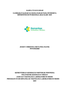 Manik, Jessey Christina Meylinda (2025) GAMBARAN KADAR GLUKOSA DARAH PADA PENDERITA HIPERTENSI DI PUSKESMAS ARAS KABU 2025. Diploma thesis, Poltekkes Medan.