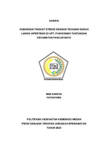 Sianipar, Mian (2023) Hubungan Tingkat Stress Dengan Tekanan Darah Lansia Hipertensi Di Upt. Puskesmas Tuntungan Kecamatan Pancur Batu. Diploma thesis, Poltekkes Kemnkes Medan.