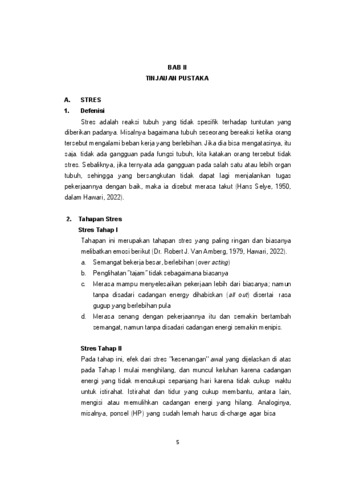 Latar Belakang: Stress adalah reaksi tubuh yang tidak spesifik terhadap