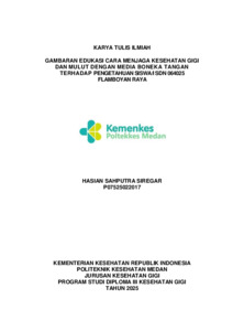 siregar, hasian (2025) Gambaran Edukasi Cara Menjaga Kesehatan Gigi Dan Mulut Dengan Media Boneka Tangan Terhadap Pengetahuan Siswa/i 064025 Flamboyan Raya. Diploma thesis, Poltekkes Kemenkes Medan.