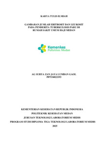Lumban gaol, Ag surya zan jaya lumban gaol (2025) GAMBARAN JUMLAH ERITROSIT DAN LEUKOSIT PADA PENDERITA TUBERKULOSIS PARU DI RUMAH SAKIT UMUM HAJI MEDAN. Diploma thesis, Poltekkes Medan.