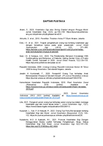 Kata kunci: Peran Orang Tua, Kebersihan Gigi, Anak Sekolah Dasar, OHI-S.