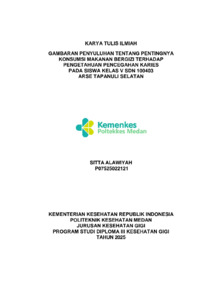 Alawiyah, Sitta (2025) Gambaran Penyuluhan tentang Pentingnya Konsumsi Makanan Bergizi terhadap Pengetahuan Pencegahan Karies pada Siswa Kelas V SDN 100403 Arse, Tapanuli Selatan. Diploma thesis, Poltekkes Kemenkes Medan.