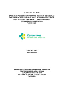 Safna, Afrilia (2025) Gambaran Pengetahuan Tentang Menyikat Gigi Melalui Penyuluhan Menggunakan Media Boneka Bergigi Pada Anak Sd Swasta Angkasa 2 Lanud Sowondo Kecamatan Medan Polonia Tahun 2025. Diploma thesis, Poltekkes Kemenkes Medan.