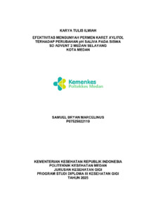 Marcelinus, Samuel Bryan (2025) Efektivitas Mengunyah Permen Karet Xylitol terhadap Perubahan pH Saliva pada Siswa SD Advent 2 Medan Selayang, Kota Medan. Diploma thesis, Poltekkes Kemenkes Medan.