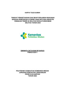BARUS, EMININTA OKTAVIANI (2025) TINGKAT PENGETAHUAN DAN SIKAP PENERAPAN HYGIENE SANITASI PADA INDUSTRI RUMAHAN TEMPE DIWILAYAH KERJA PUSKESMAS DELITUA TAHUN 2025. Diploma thesis, Poltekkes Kemenkes Medan.