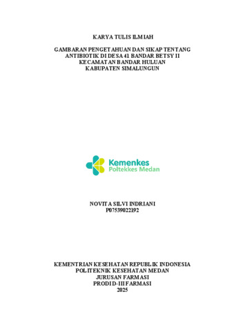 NOVITA SILVI INDRIANI, NOVITA SILVI INDRIANI (2025) GAMBARAN PENGETAHUAN DAN SIKAP TENTANG ANTIBIOTIK DI DESA 41 BANDAR BETSY II KECAMATAN BANDAR HULUAN KABUPATEN SIMALUNGUN. Diploma thesis, Poltekkes Kemenkes Medan.