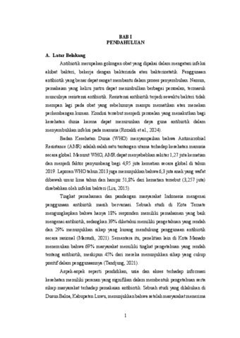 karena itu, pemahaman masyarakat terhadap penggunaan antibiotik yang benar sangat penting untuk mencegah penyalahgunaan. Penelitian ini bertujuan untuk