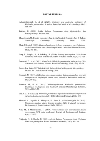 Kata kunci: Infeksi Saluran Pernapasan Akut, Klebsiella pneumoniae