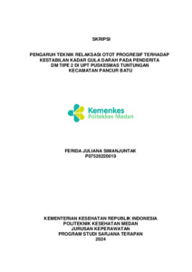 Simanjuntak, Ferida Juliana (2024) Pengaruh Teknik Relaksasi Otot Progresif Terhadap Kestabilan Kadar Gula Darah Pada Penderita Dm Tipe 2 Di Upt Puskesmas Tuntungan Kecamatan Pancur Batu. Diploma thesis, Poltekkes Kemenkes Medan.