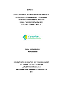 Barus, Rasmi Drona (2024) Pengaruh Brisk Walking Exercise Terhadap Penurunan Tekanan Darah Pada Lansia Penderita Hipertensi Di Wilayah Kerja Puskesmas Tuntungan Kecamatan Pancur Batu. Diploma thesis, Poltekkes Kemenkes Medan.
