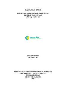 S, TIURMA TESSA (2025) FORMULASI DAN UJI STABILITAS POMADE EKSTRAK DAUN KELOR (Moringa oleifera L.). Diploma thesis, Poltekkes Kemenkes Medan.