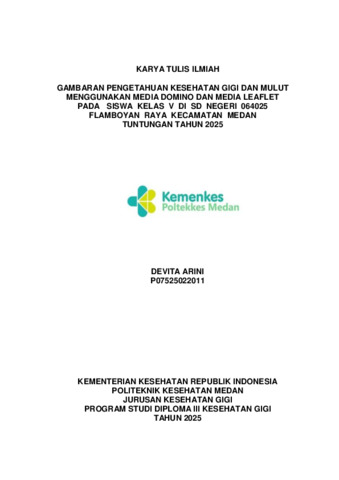 Arini, Devita (2025) Gambaran Pengetahuan Kesehatan Gigi dan Mulut Menggunakan Media Domino dan Leaflet pada Siswa Kelas III SD Negeri 064025 Flamboyan Raya Kecamatan Medan Tuntungan Kota Medan Sumatera Utara 2025. Diploma thesis, Poltekkes Kemenkes Medan.