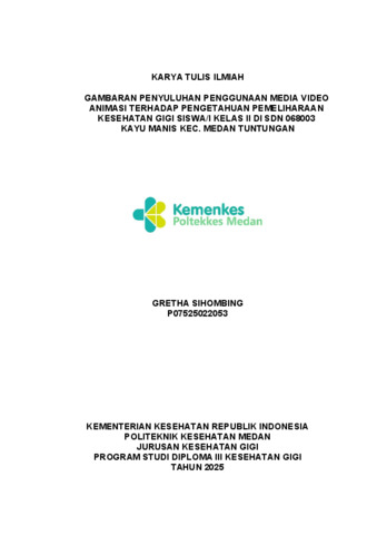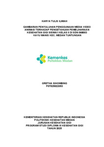 Sihombing, Gretha (2025) Gambaran Penyuluhan Penggunaan Media Video Animasi Terhadap Pengetahuan Pemeliharaan Kesehatan Gigi pada Siswa/i kelas II SDN 068003 Kayu Manis Kecamatan Medan Tuntungan. Diploma thesis, Poltekkes Kemenkes Medan.
