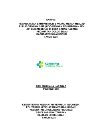 HARAHAP, ARNI MARLIANA (2025) PEMANFAATAN SAMPAH KULIT BAWANG MERAH MENJADI PUPUK ORGANIK CAIR (POC) DENGAN PENAMBAHAN MOL AIR CUCIAN BERAS DI DESA SARAN PADANG KECAMATAN DOLOK SILAU KABUPATEN SIMALUNGUN TAHUN 2025. Diploma thesis, Poltekkes Kemenkes Medan.