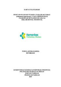 NURUL AZZIMA RADHIA, NURUL AZZIMA RADHIA (2025) PENETAPAN KADAR VITAMIN C PADA BUAH TOMAT (Solanum lycopersicum L.) YANG DIPEROLEH DI PASAR BUAH SETIA BUDI SECARA 2,6 DIKLOROFENOL INDOFENOL. Diploma thesis, Poltekkes Kemenkes Medan.