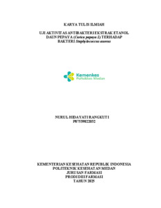 RANGKUTI, NURUL HIDAYATI (2025) UJI AKTIVITAS ANTIBAKTERI EKSTRAK ETANOL DAUN PEPAYA (Carica papaya L) TERHADAP BAKTERI Staphylococcus aureus. Diploma thesis, Poltekkes Kemenkes Medan.