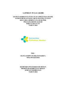 Harefa, Olivia Poppy Putriani (2024) Asuhan Kebidanan Pada Ny. D G1p0a0 Masa Hamil Sampai Dengan Masa Nifas Dan Pelayanan Keluarga Berencana Di Klinik Pratama Rosni Alizar Percut Sei Tuan Tahun 2024. Diploma thesis, Poltekkes Kemenkes Medan.