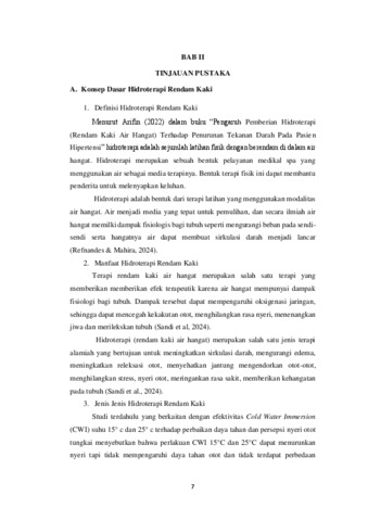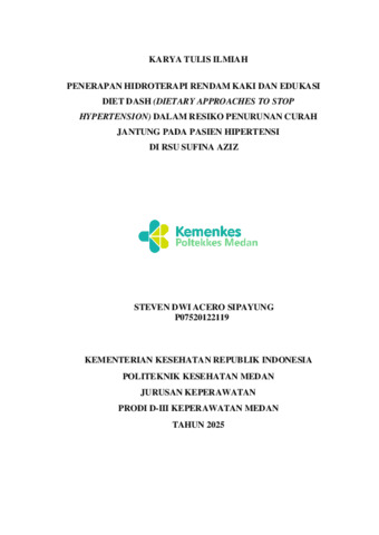 mengontrol tekanan darah. Tujuan: Mendeskripsikan penerapan hidroterapi rendam kaki dan edukasi diet DASH dan efeknya terhadap penurunan tekanan darah sistolik dan diastolic, dan nyeri pada pasien hipertensi. Metode: Desain Penelitian ini berupa studi kasus deskriptif, subjek terdiri dari 2 responden laki-laki berusia 53 dan 51 tahun dengan klasifikasi hipertensi sedang yang dirawat di RSU