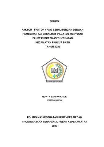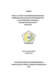 Pardede, Novita Sari (2023) Faktor - Faktor Yang Berhubungan Dengan Pemberian Asi Eksklusif Pada Ibu Menyusui Di Upt Puskesmas Tuntungan Kecamatan Pancur Batu Tahun 2023. Diploma thesis, Poltekkes Kemnkes Medan.