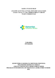 Tengku, Shahira (2025) ANALISIS ASAM MALAT PADA TEPACHE NANAS MADU (Ananas Comosus (L.) Merr) BERDASARKAN VARIASI WAKTU FERMENTASI. Diploma thesis, Poltekkes Medan.