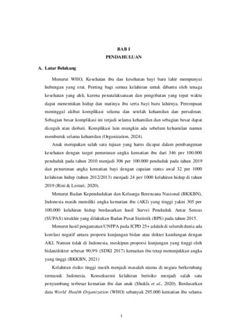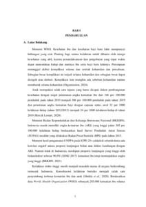 Angka Kematian Ibu (AKI) dan Angka Kematian Bayi (AKB) merupakan salah satu indikator pembangunan kesehatan dalam RPJMN 2018-2023. Upayapercepatan penurunan AKI membutuhkan upaya inovatif, proaktif, dan antisipatif melalui pendekatan resiko seperti kegiatan peningkatan akses kesehatan