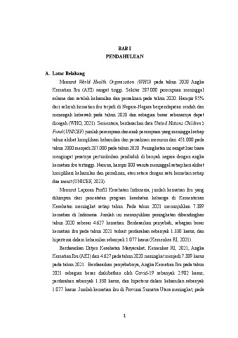 Latar Belakang : Menurut World Health Organization (WHO) pada tahun 2020 Angka Kematian Ibu (AKI) sangat tinggi yaitu 287.000. Menurut Laporan Profil Kesehatan Indonesia, jumlah kematian ibu pada tahun 2021 yaitu 7.389 (Kemenkes RI, 2021). Menurut Profil Kesehatan Provinsi Sumatera Utara tahun 2022 Angka Kematian Ibu (AKI) yaitu sebesar 50,60 per 100.000 kelahiran hidup dan Angka Kematian Bayi (AKB) sebesar 2.6 per 1000 kelahiran hidup. Upaya untuk menurunkan AKI dan AKB adalah dengan melakukan asuhan