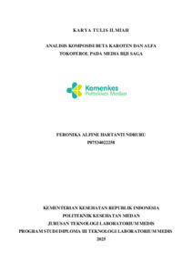 Feronika Alfine Hartanti, Ndruru (2025) ANALISIS KOMPOSISI BETA KAROTEN DAN ALFA TOKOFEROL PADA MEDIA BIJI SAGA. Diploma thesis, Poltekkes Medan.
