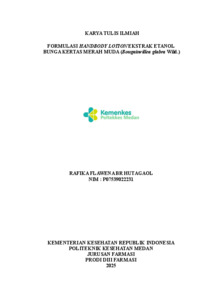 HUTAGAOL, RAFIKA FLAWENA (2025) FORMULASI HANDBODY LOTION EKSTRAK ETANOL BUNGA KERTAS MERAH MUDA (Bougainvillea glabra Wild.). Diploma thesis, Poltekkes Kemenkes Medan.