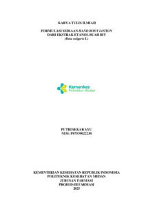 PUTRI SEKAR AYU, PUTRI SEKAR AYU (2025) FORMULASI SEDIAAN HAND BODY LOTION DARI EKSTRAK ETANOL BUAH BIT (Beta vulgaris L). Diploma thesis, Poltekkes Kemenkes Medan.