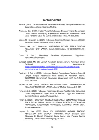 Kata kunci : Lansia, Kecemasan, Pola Tidur.