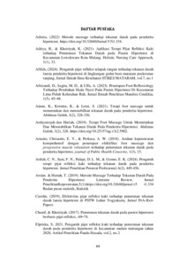 Ferningsih, Zalukhu (2025) Penerapan Terapi Pijat Kaki Terhadap Upaya Penurunan Tekanan Darah Pada Pasien Hipertensi Dengan Gangguan Nyeri Akut Di Wilayah Kerja UPTD Puskesmas Kauko Kecamatan Kota Gunungsitoli. Diploma thesis, Poltekkes Kemenkes Medan.