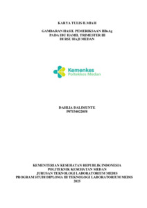 Dalimunte, Dahlia (2025) GAMBARAN HASIL PEMERIKSAAN HBSAG PADA IBU HAMIL TRIMESTER III DI RSU HAJI MEDAN. Diploma thesis, Poltekkes Medan.