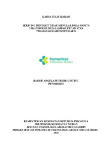 Br. Ginting, Barbie Angela Putri (2025) SKRINING PENYAKIT TIDAK MENULAR PADA WANITA USIA SUBUR DI DESA LAMBAR KECAMATAN TIGAPANAH KABUPATEN KARO. Diploma thesis, Poltekkes Kemenkes Medan.