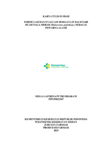 SIBARANI, MEGA LASTRINA PUTRI SIBARANI (2025) FORMULASI DAN EVALUASI SEDIAAN LIP BALM SARI BUAH NAGA MERAH (Hylocereus polyrhizus) SEBAGAI PEWARNA ALAMI. Diploma thesis, POLTEKKES KEMENKES MEDAN.