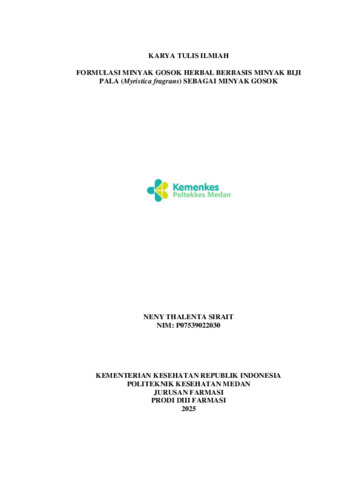 SIRAIT, NENY THALENTA (2025) FORMULASI MINYAK GOSOK HERBAL BERBASIS MINYAK BIJI PALA (Myristica fragrans) SEBAGAI MINYAK GOSOK. Diploma thesis, POLTEKKES KEMENKES MEDAN.