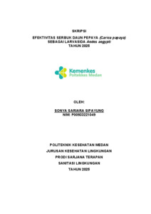 SIPAYUNG, SONYA SARIARA (2025) EFEKTIVITAS SERBUK DAUN PEPAYA (Carica papaya) SEBAGAI LARVASIDA Aedes aegypti TAHUN 2025. Diploma thesis, Poltekkes Kemenkes Medan.