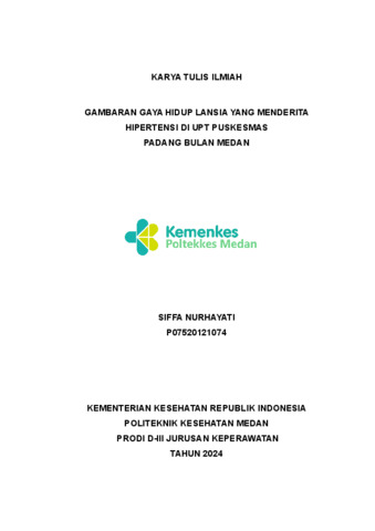 Nurhayati, Sffa (2024) Gambaran Gaya Hidup Lansia Yang Menderita Hpertensi di UPT Puskesmas Padang Bulan medan. Diploma thesis, Poltekkes Kemnkes Medan.