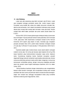 Latar Belakang: Hipertensi adalah suatu kondisi Dimana volume darah meningkat