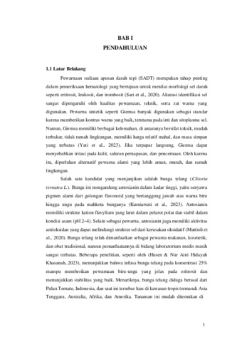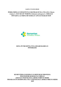 Hasibuan, Dona Putri Septia Wulandari (2025) PERBANDINGAN EFEKTIVITAS EKSTRAK BUNGA TELANG (Clitoria tenatea L.) DAN KULIT TERONG (Solanum melongena L.) SEBAGAI PEWARNA ALTERNATIF SEDIAAN APUSAN DARAH TEPI. Diploma thesis, Poltekkes Medan.