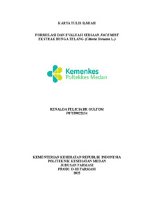 BR GULTOM, RENALDA FELICIA (2025) FORMULASI DAN EVALUASI SEDIAAN FACE MIST EKSTRAK BUNGA TELANG (Clitoria Ternatea L.). Diploma thesis, Poltekkes Kemenkes Medan.