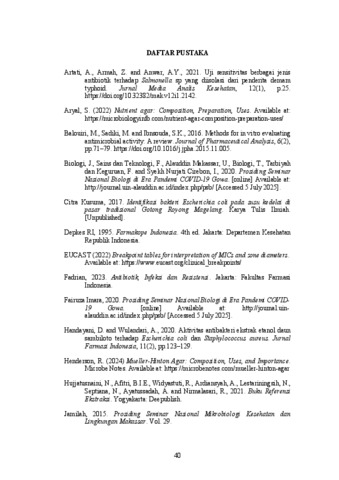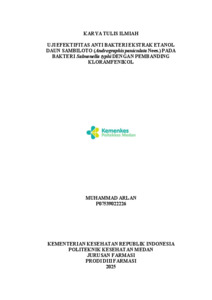 MUHAMMAD ARLAN, MUHAMMAD ARLAN (2025) UJI EFEKTIFITAS ANTI BAKTERI EKSTRAK ETANOL DAUN SAMBILOTO (Andrographis paniculata Nees.) PADA BAKTERI Salmonella typhi DENGAN PEMBANDING KLORAMFENIKOL. Diploma thesis, Poltekkes Kemenkes Medan.