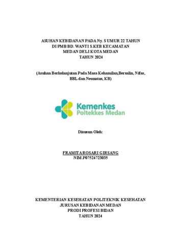 Girsang, Framita Rosari (2024) Asuhan Kebidanan Pada Ny.S Umur 22 Tahun di PMB Wanti Kecamatan Medan Deli Kota Medan Tahun 2024. Diploma thesis, Poltekkes Kemenkes Medan.