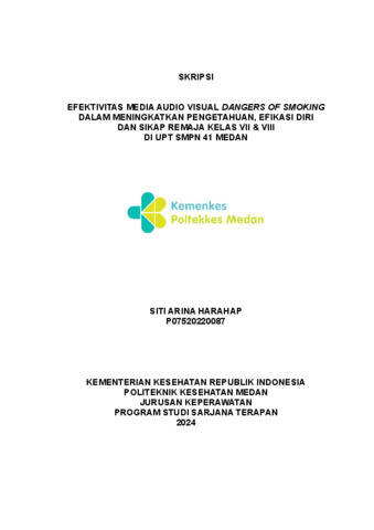 Harahap, Siti Arina (2024) Efektivitas Media Audio Visual Dangers Of Smoking Dalam Meningkatkan Pengetahuan, Efikasi Diri Dan Sikap Remaja Kelas Vii & Viii Di UPT SMPN 41 Medan. Diploma thesis, Poltekkes Kemnkes Medan.