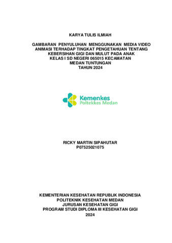 Sipahutar, Ricky Martin (2024) Gambaran Penyuluhan Menggunakan Media Video Animasi terhadap Tingkat Pengetahuan tentang Kebersihan Gigi dan Mulut Pada Anak Kelas I SD Negeri 065015 Kecamatan Medan Tuntungan Tahun 2024. Diploma thesis, Poltekkes Kemenkes Medan.