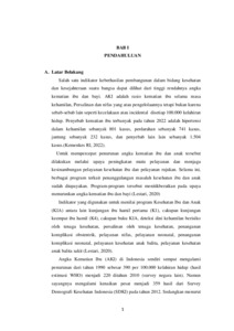 Latar belakang : Salah satu indikator keberhasilan pembangunan dalam bidang kesehatan dan kesejahteraan suatu bangsa dapat dilihat dari tinggi rendahnya angka kematian ibu dan bayi. AKI adalah rasio kematian ibu selama masa