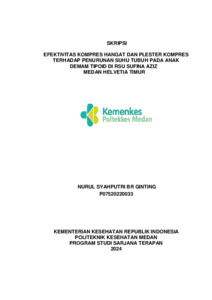 Ginting, Nurul Syahputri Br (2024) Efektivitas Kompres Hangat Dan Plester Kompres Terhadap Penurunan Suhu Tubuh Pada Anak Demam Tipoid Di Rsu Sufina Aziz Medan Helvetia Timur. Diploma thesis, Poltekkes Kemnkes Medan.