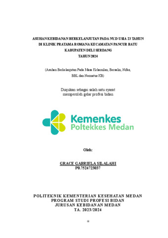 Silalahi, Grace Gabriela (2024) Asuhan Kebidanan Berkelanjutan Pada Ny.D Usia 23 Tahun Di Klinik Pratama Romana Kecamatan Pancur Batu Kabupaten Deli Serdang Tahun 2024. Diploma thesis, Poltekkes Kemenkes Medan.
