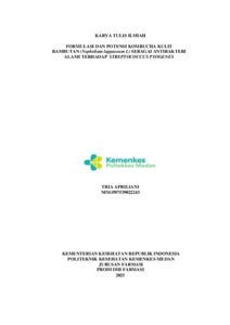 TRIA APRILIANI, TRIA APRILIANI (2025) FORMULASI DAN POTENSI KOMBUCHA KULIT RAMBUTAN (Nephelium lappaceum L) SEBAGAI ANTIBAKTERI ALAMI TERHADAP STREPTOCOCCUS PYOGENES. Diploma thesis, Poltekkes Kemenkes Medan.