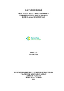 APRIYANI, APRIYANI (2025) PROFIL PERESEPAN OBAT PADA PASIEN PENYAKIT JANTUNG RAWAT JALAN DI RSUP H. ADAM MALIK MEDAN. Diploma thesis, Poltekkes Kemenkes Medan.